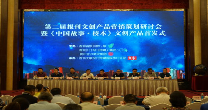 继金沙酒业与长江传媒战略合作协议签订后,8月8日,由湖北省报刊发行局、湖北长江报刊传媒(集团)、金沙酒业共同主办,湖北大家报刊传媒有限责任公司承办的“第二届报刊文创产品营销策划研讨会暨中国故事·校本酒文创产品首发式”在武汉汉口阳光酒店举行,标志着中国故事·校本酒高端文创产品正式上市。